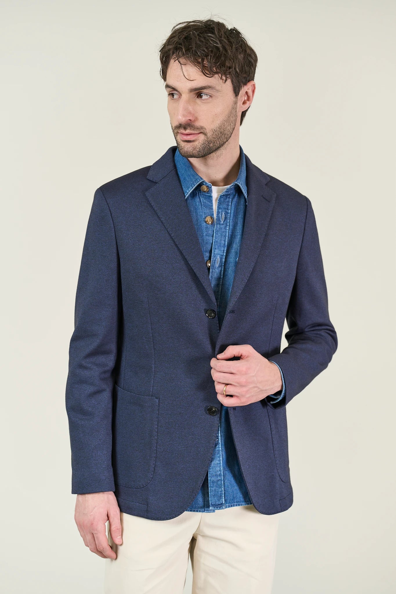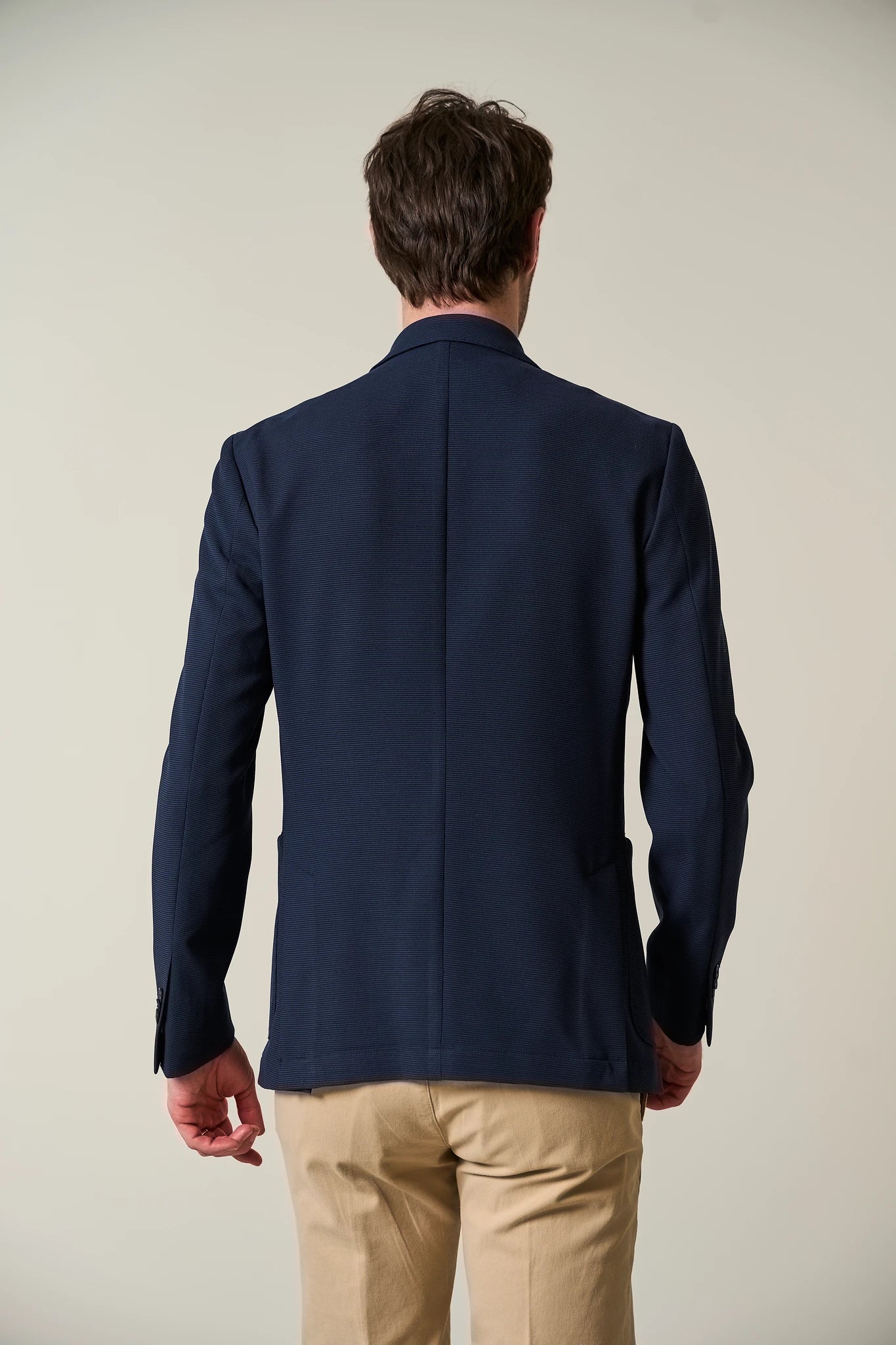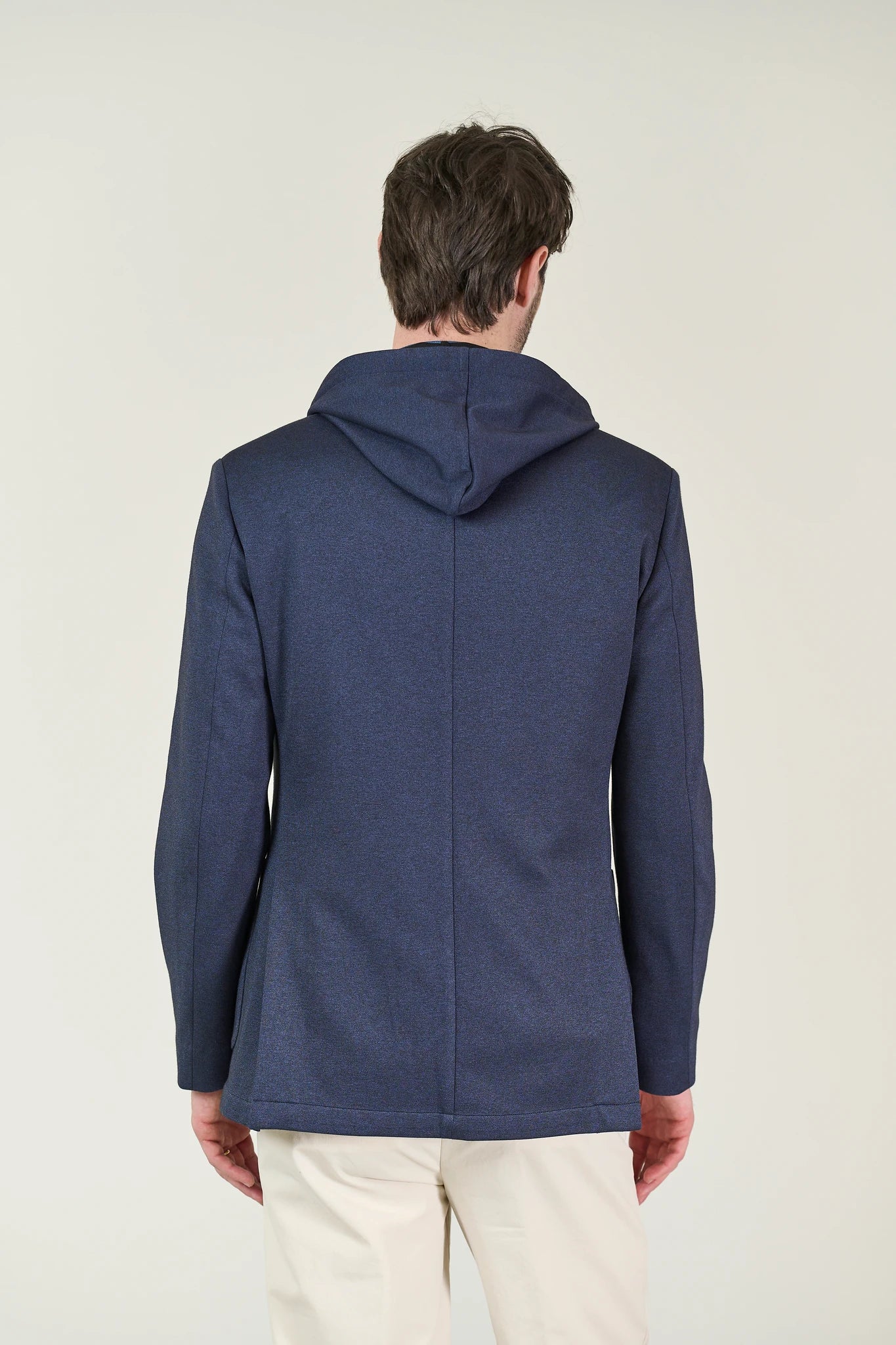 Giacca blu decostruita jersey misto lana custom fit-Angelico