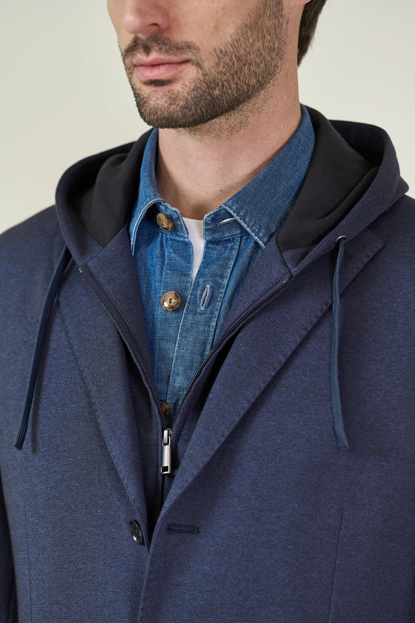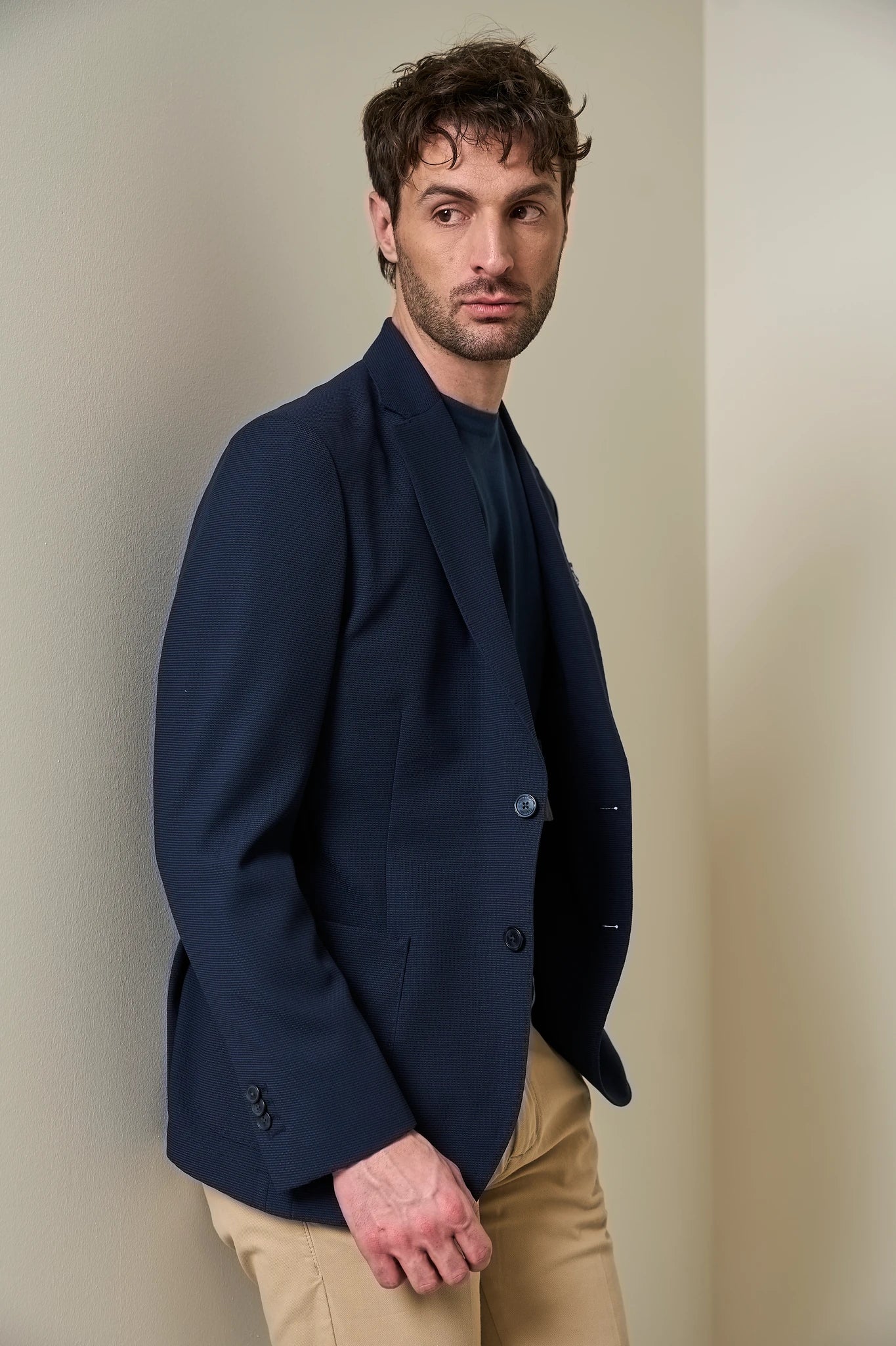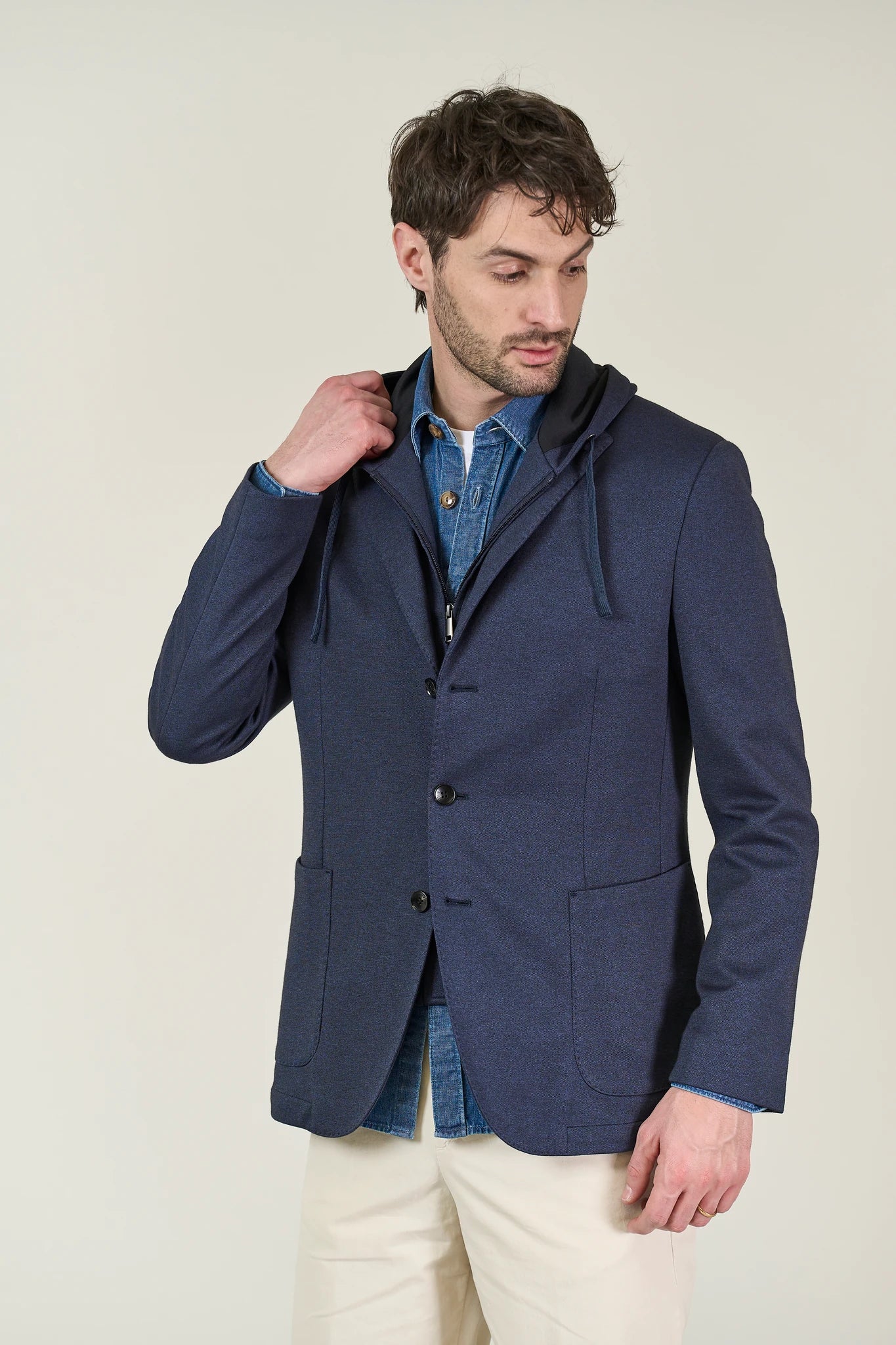 Giacca blu decostruita jersey misto lana custom fit-Angelico