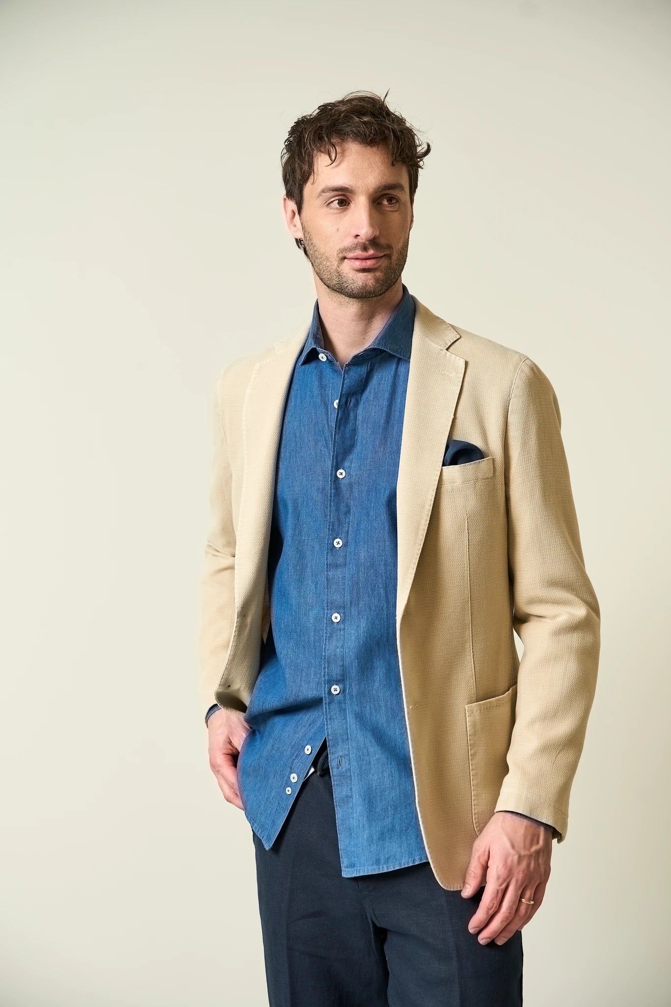Giacca beige decostruita sale pepe custom fit-Angelico