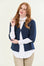 Women's navy blue cardigan made of 100% cotton , Made in Italy , with a refined woven weave . The compact and structured fabric gives the garment a contemporary, textured feel while maintaining softness and comfort. The single-button closure enhances the clean, feminine line, creating a simple and versatile effect. Perfect for wearing over shirts or light blouses, it's ideal for completing business or casual chic looks with a touch of understated elegance and Italian quality.